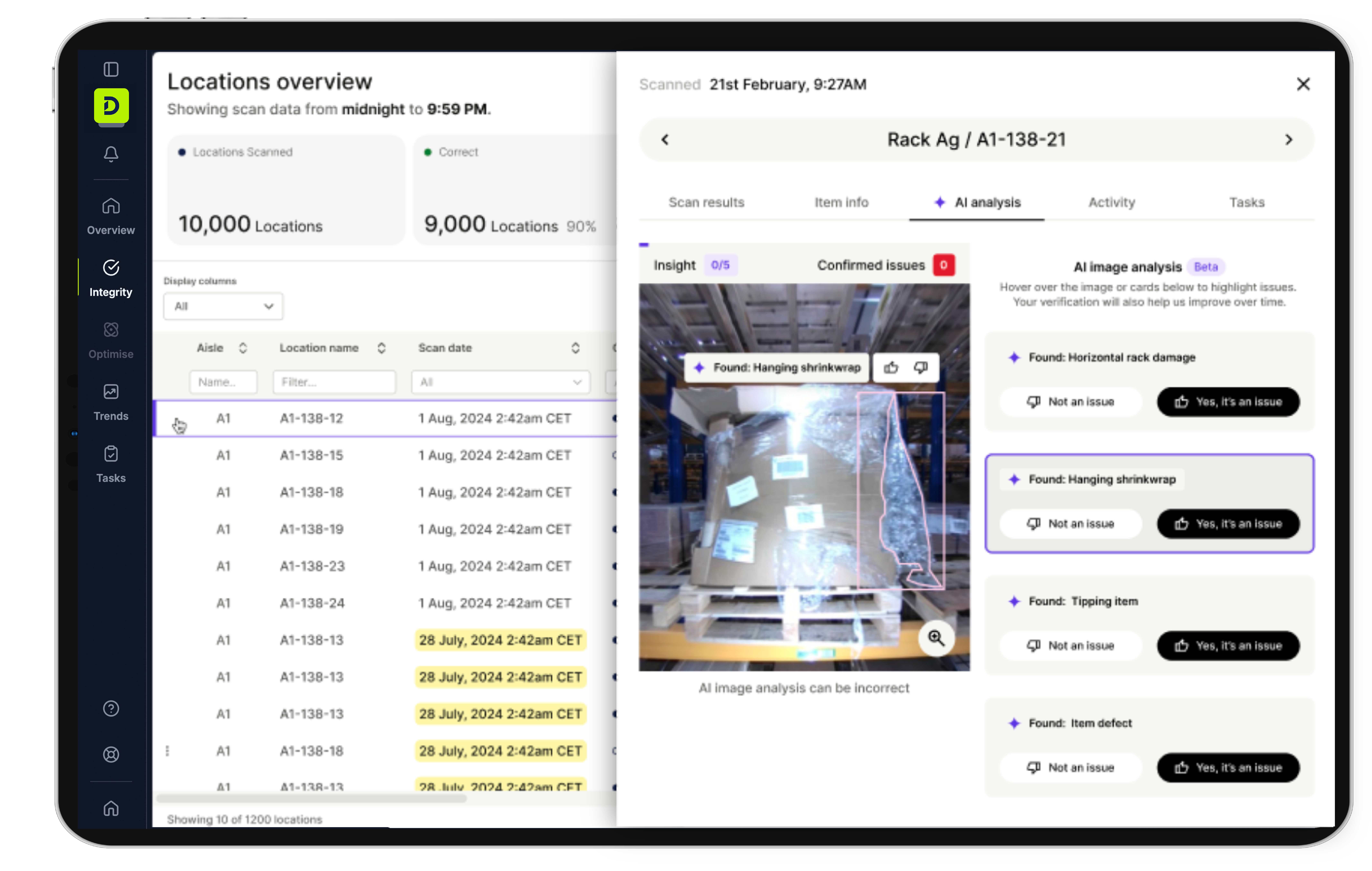 Storage Health acts as an AI-powered check that runs with every robot scan. It helps you act early, give more protection to your people and assets, and resolve risks before they become costly incidents. Every flagged issue can be investigated at the click of a button, cutting hours of manual searching.
