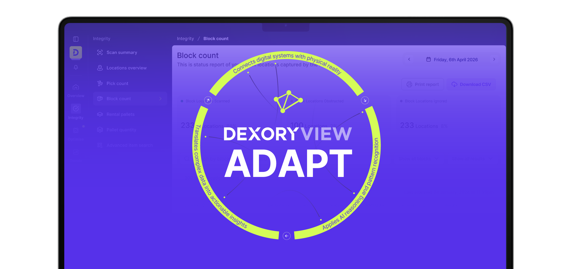 Unlike AI tools that work on historical or system data alone, DexoryView Adapt is built on continuous physical scans of your warehouse. What you see is what's actually there, not what the WMS thinks is there.
