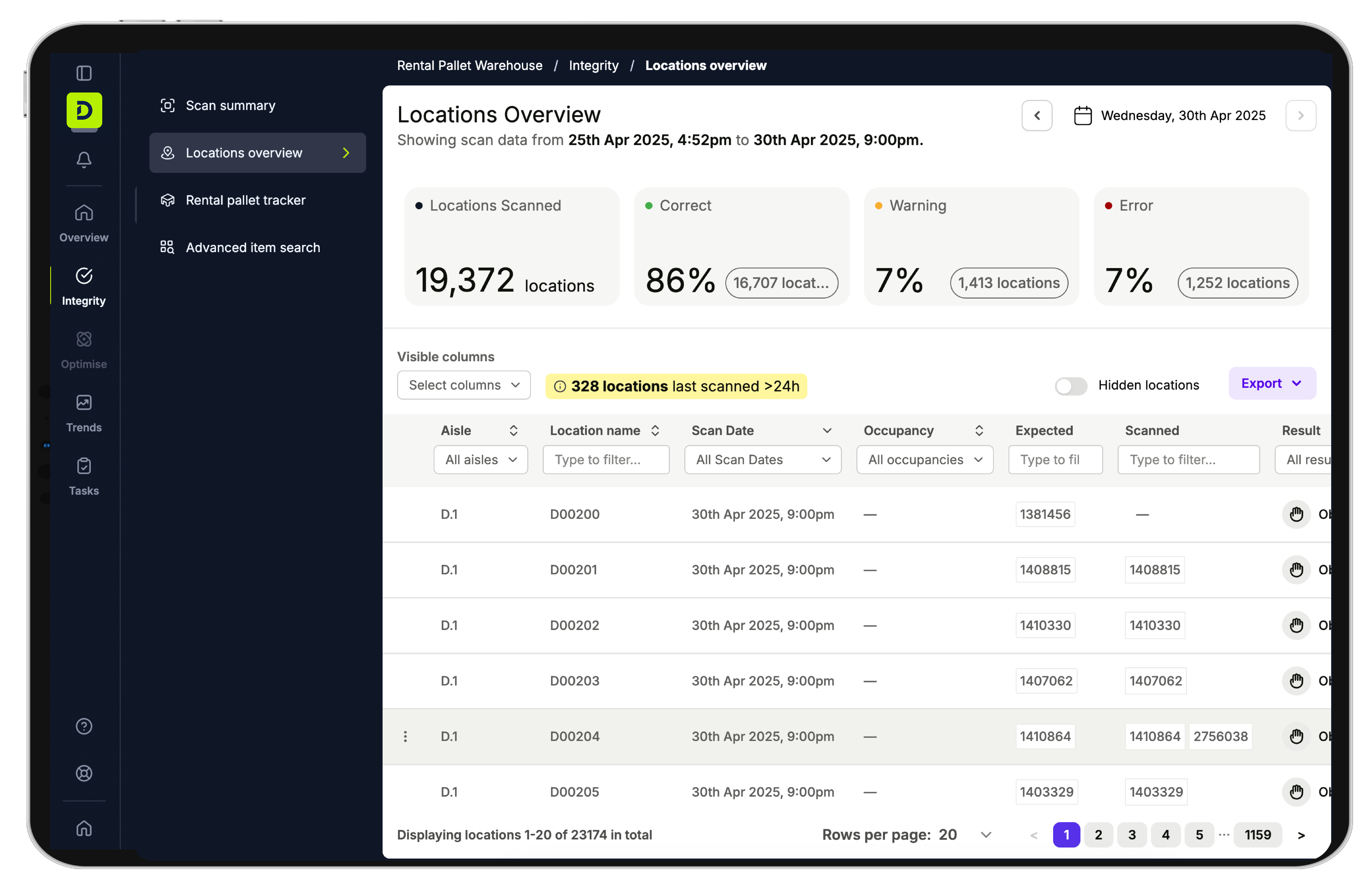 DexoryView Integrity résout cela grâce à une analyse automatisée des blocs de stockage, donnant une visibilité en temps réel sur volumes, conditions et positions.